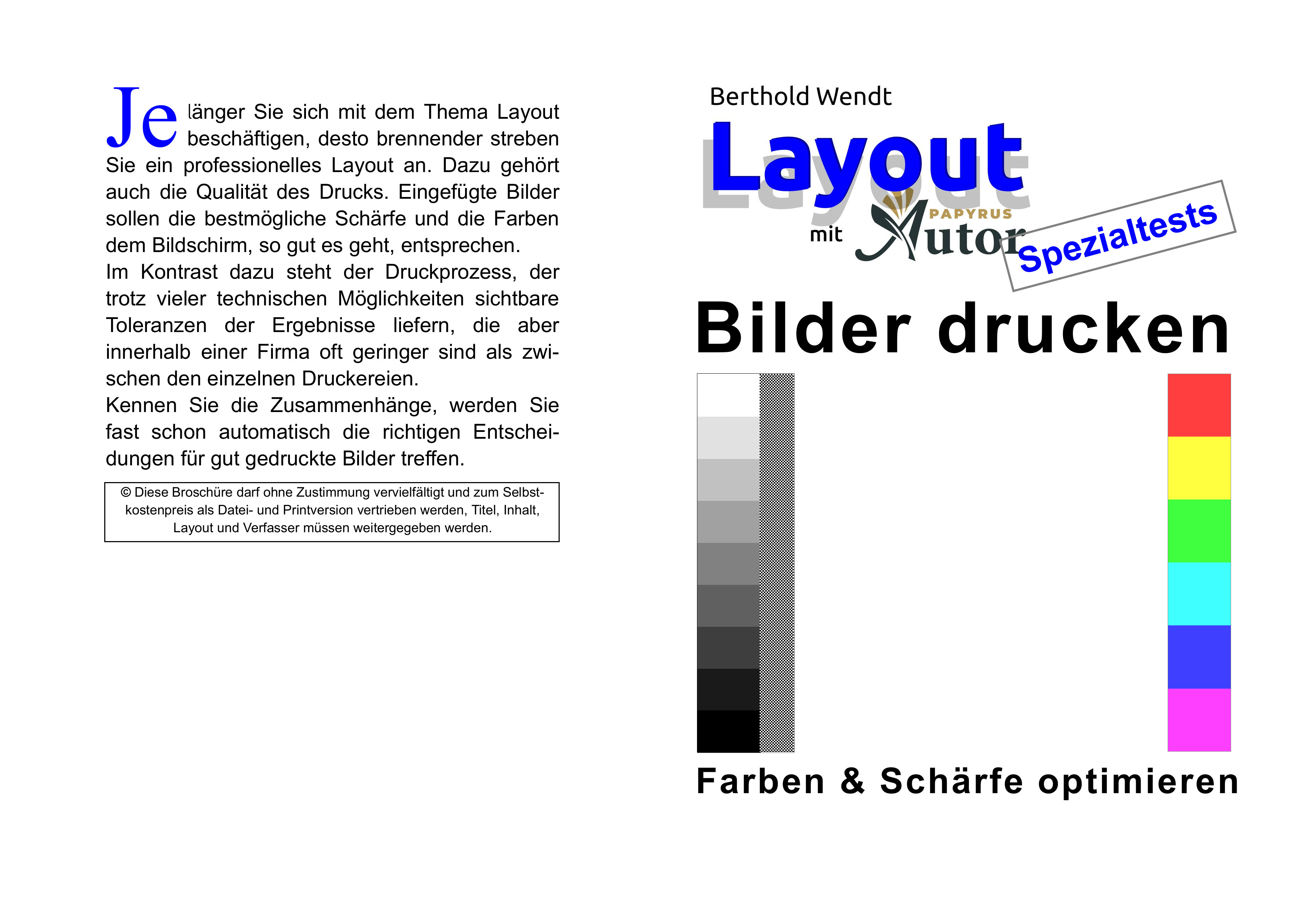Die werden in der Broschüre geklärt. Übrigens lohnt sich unter Umständen auch ein Druck auf dem heimischen Drucker, um dessen Qualität zu dokumentieren.